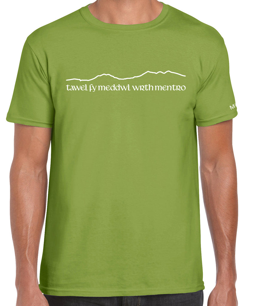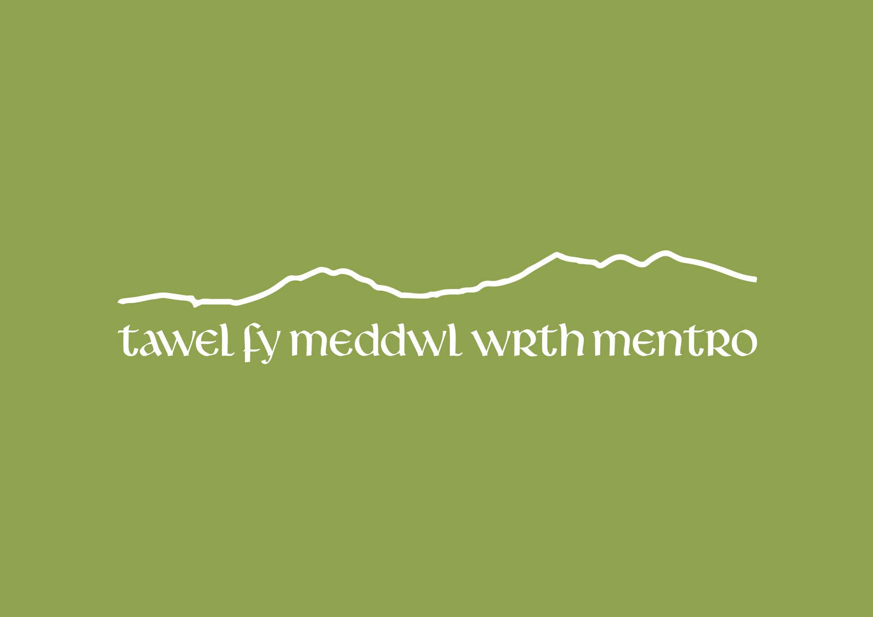 'Tawel fy meddwl wrth mentro' - 'At peace in the mountains'.
